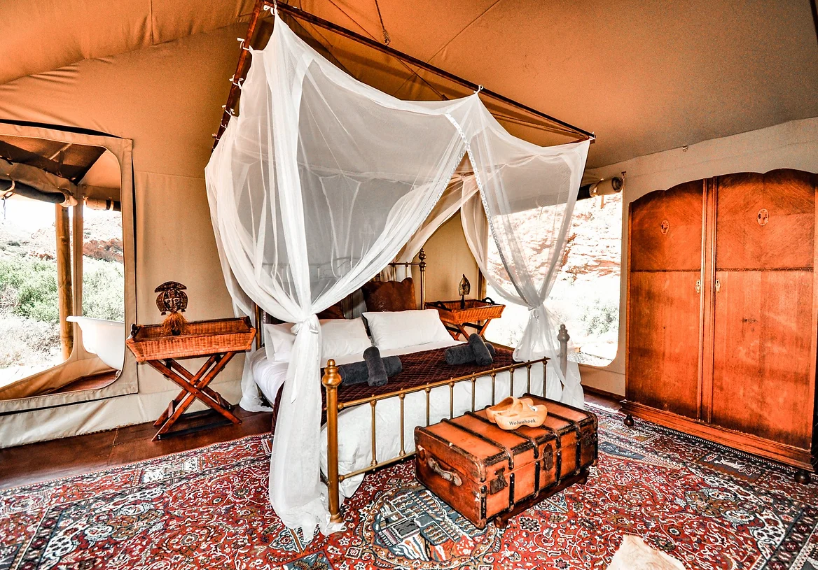 #mountains , Set deep in the mountains down a secluded valley you will find Leopard’s Kloof Camp. Designed to make guests feel like explorers from a time past, Leopard’s Kloof has every luxury you might need on your adventure into the mountains. Leopard’s Kloof is 100% private and secluded, the nearest people are 4km back down the road which has a dead-end at the camp and is for guest access only